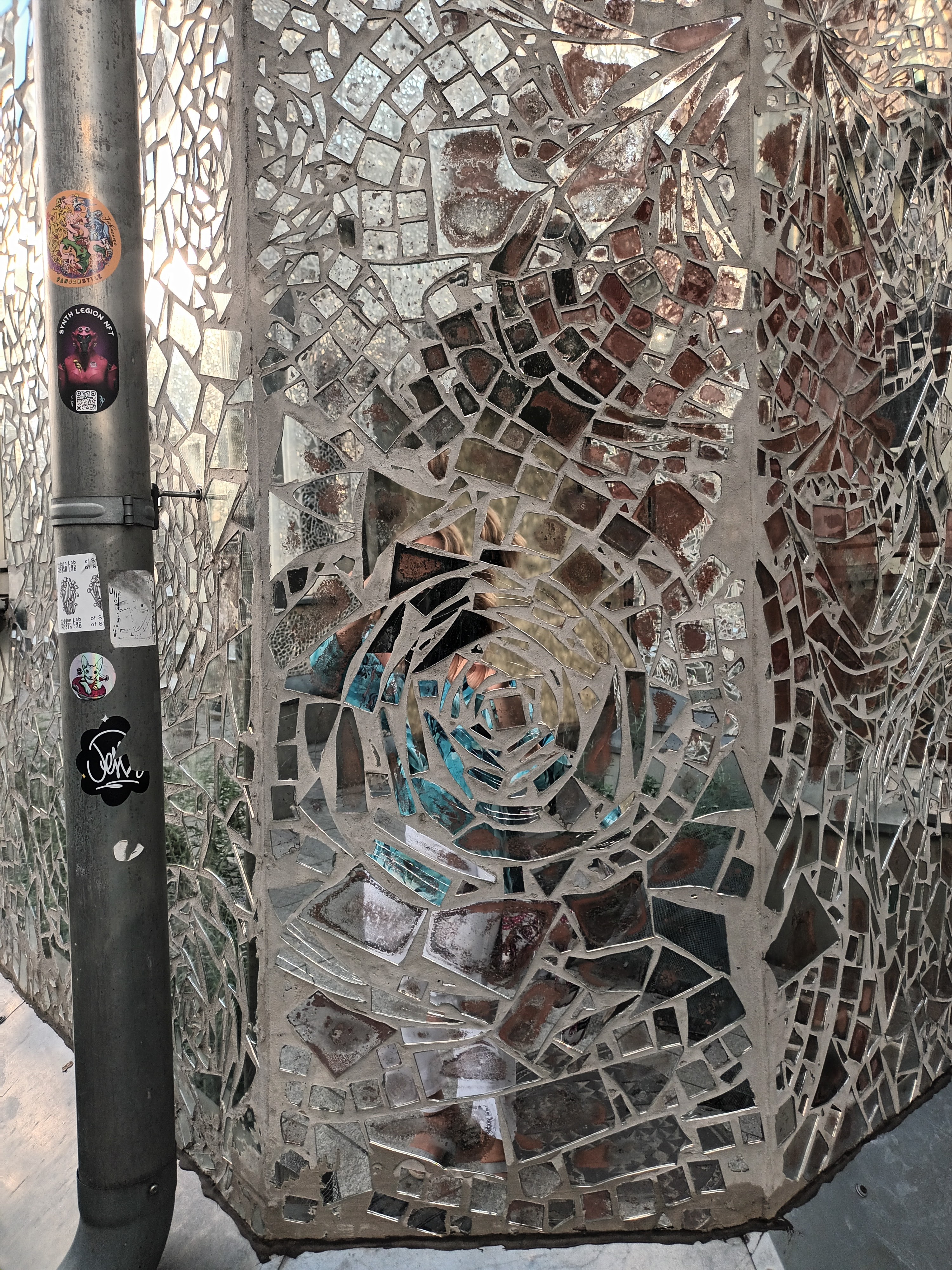 Ezután bementünk Lodz központjába, fagyiztunk, sétáltunk a Priotrkowska-n, Európa egyik leghosszabb sétálóutcáján. Itt található egyébként a világ legnagyobb grafitije is. Gyönyörű eklektikus és szecessziós épületeket láttunk, voltunk a Rózsa-passzázson, ahol kis tükördarabokból van kirakva a házak fala. (Egy Joanna Rajkowska nevű művész készítette 2013-ban, annak örömére, hogy a lánya, Rosa meggyógyult a szemét megtámadó rákból.)